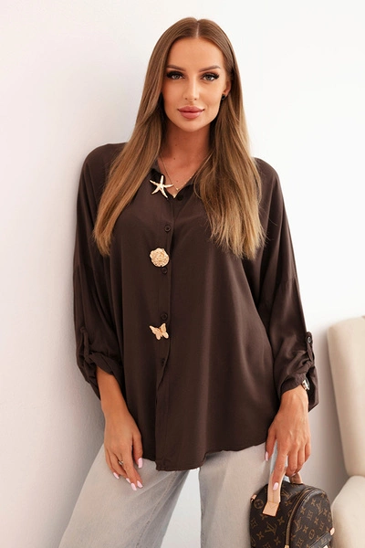 Damenbluse aus Viskose mit dekorativen Knöpfen und Kragen braun