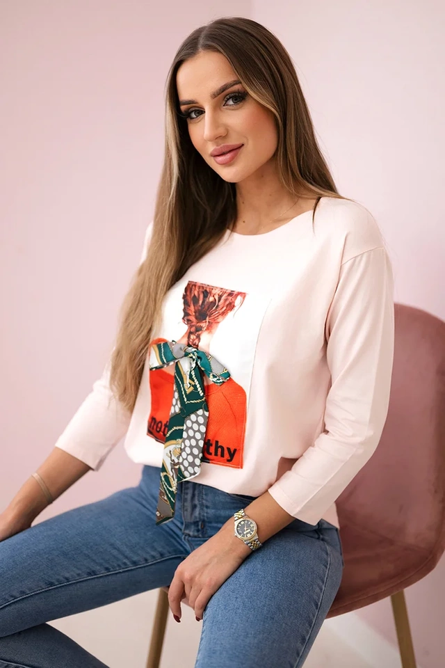 Blúzka s grafikou 3D Noteworthy prášková ružová