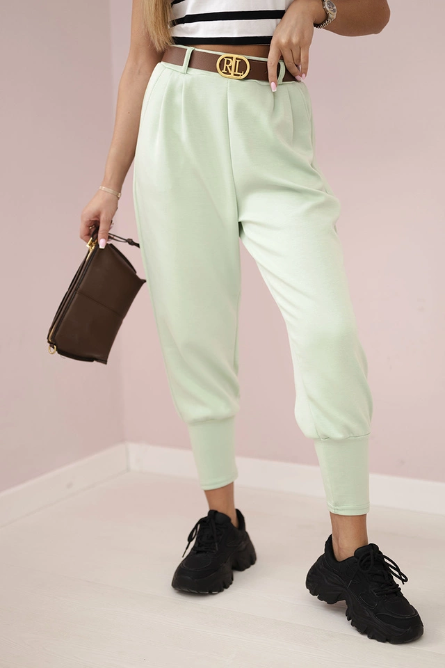 Spodnie z paskiem i kieszeniami masełko ciemno miętowe