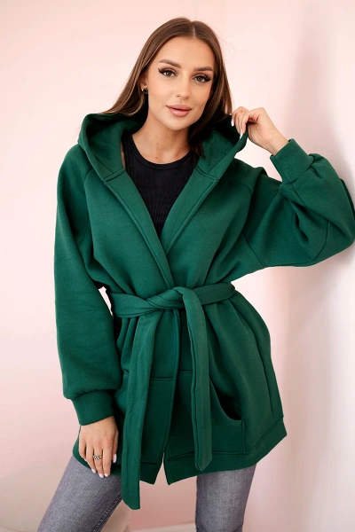Insulated cape tied at the waist dark green
