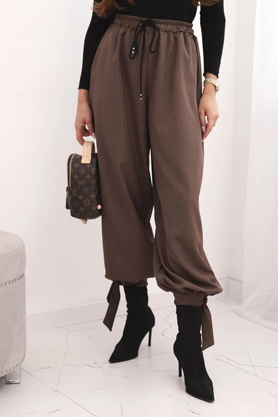 Dámske nohavice so širokým strihom a viazaním dole mocca
