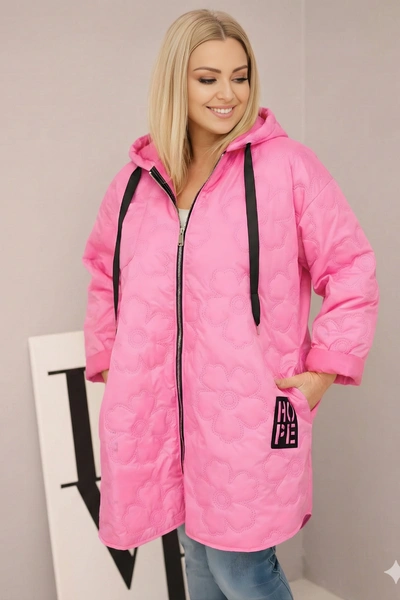 Plus Size women's quilted jacket with a hood and the word HOPE light pink