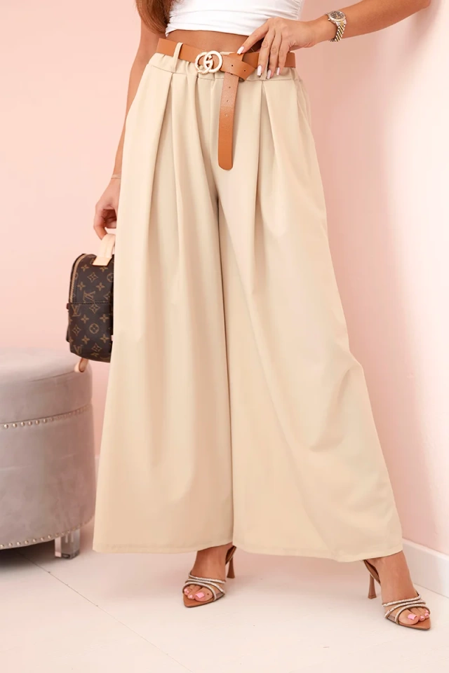 Kelnės su diržu ir plačiomis klešnėmis - šviesiai smėlio spalvos