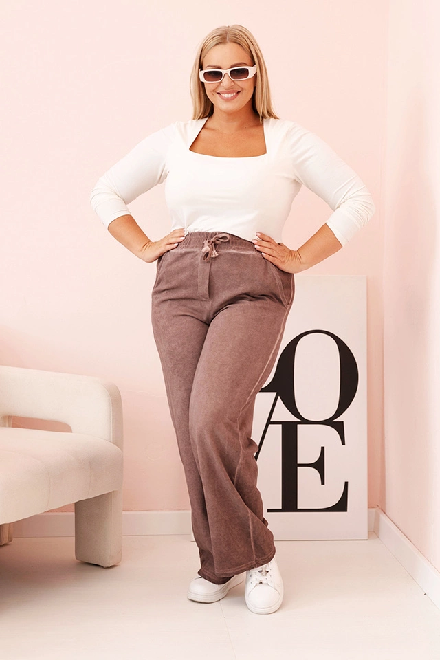 Moteriškos dekatizuotos kelnes Plus Size su viskoze ir gumy fango