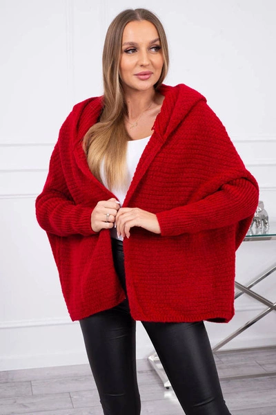 Sweter z kapturem i rękawami typu nietoperz czerwony