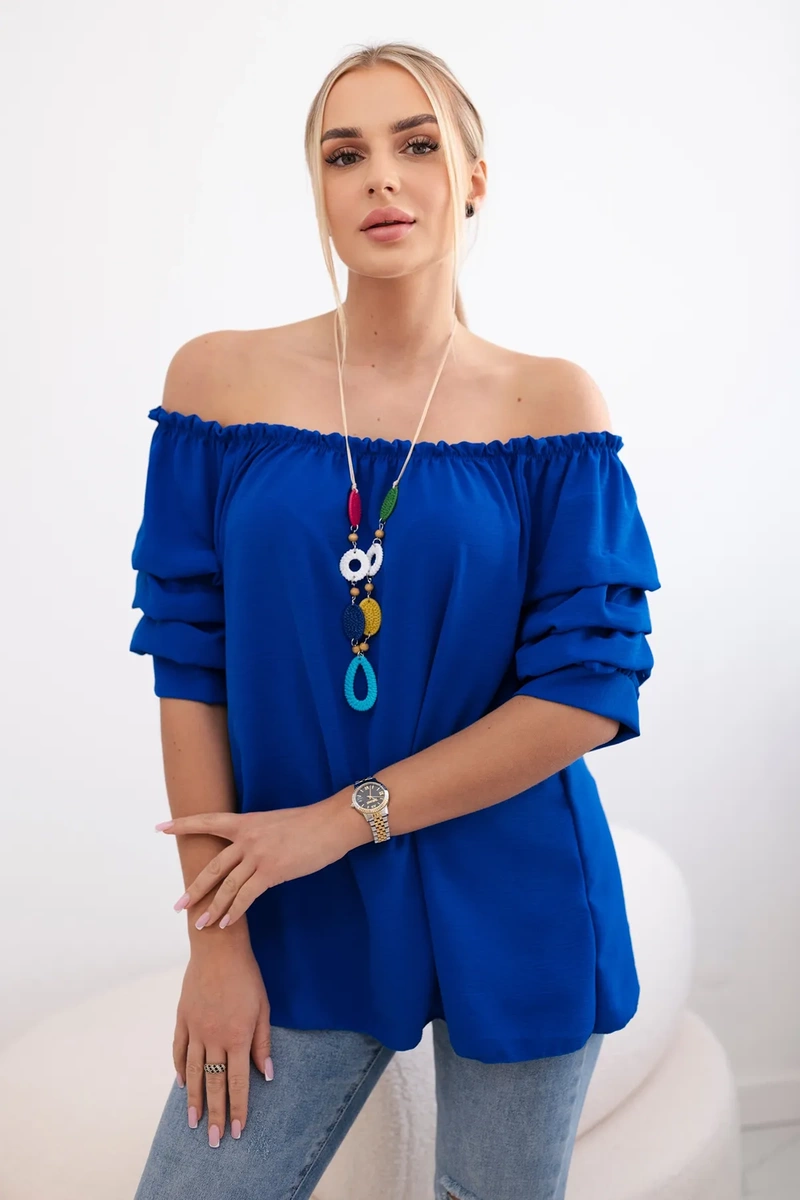 Španělská halenka s ozdobnými rukávy chrpově modrá