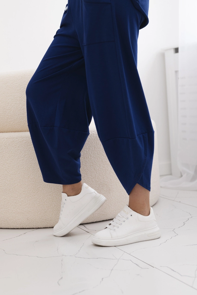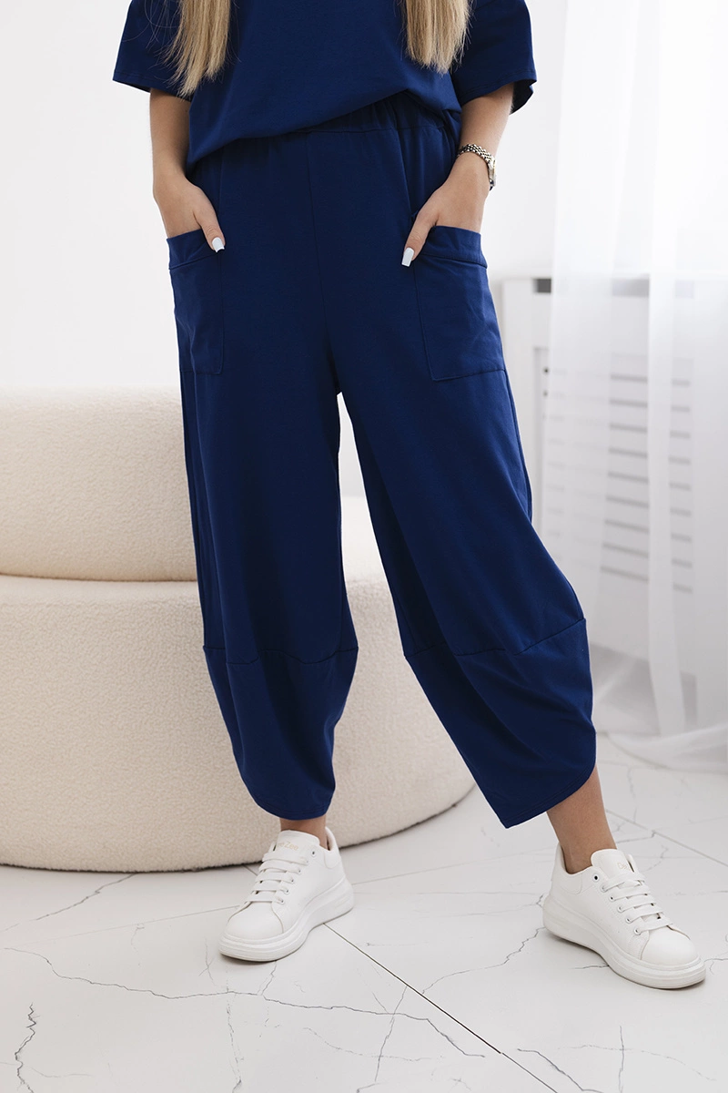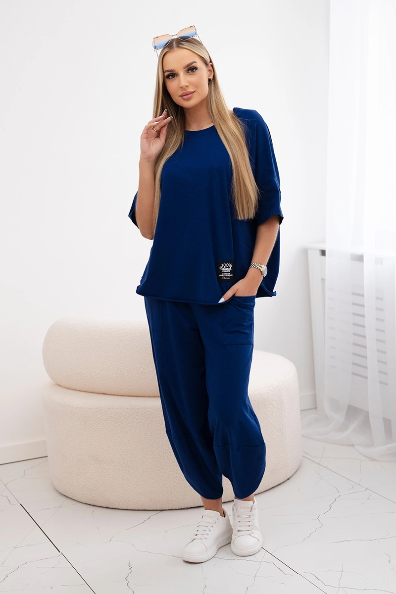 Bavlněný komplet halenka + kalhoty světle tmavě modrá