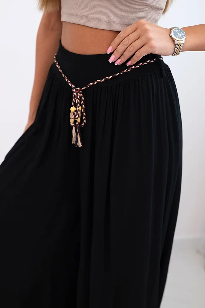Dámské kalhoty z viskózy se širokými nohavicemi černý