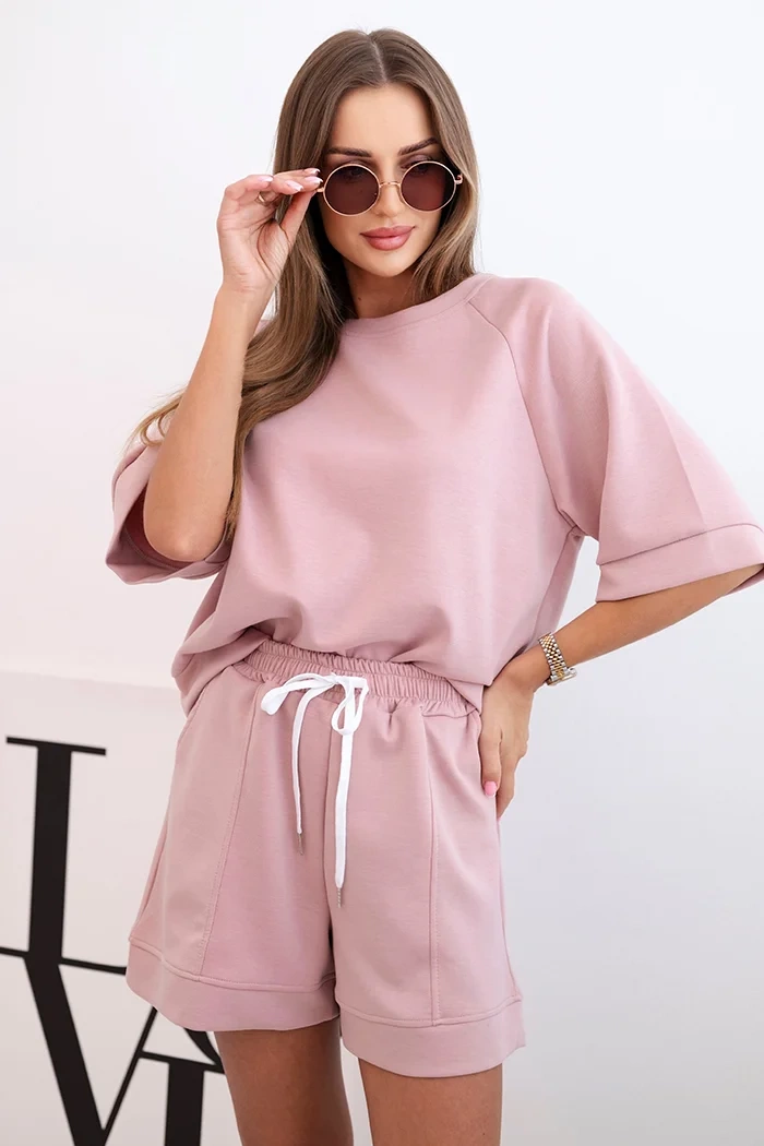 Dámská máslová souprava s halenkou s krátkým rukávem a šortkami s gumičkou tmavě růžová