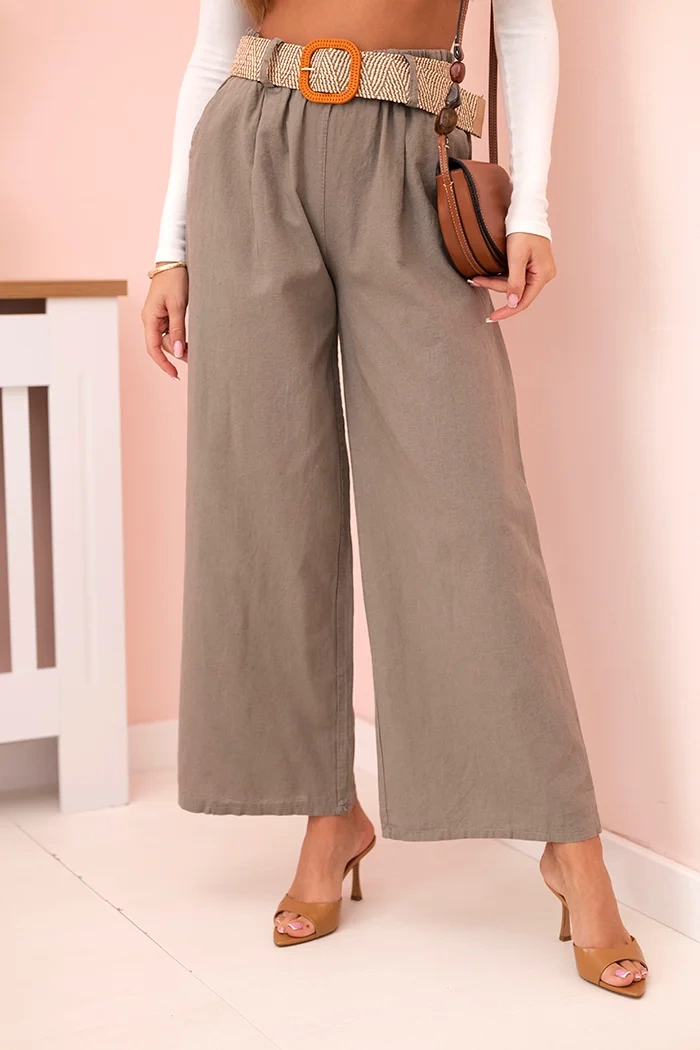 Dámské lněné kalhoty se širokými nohavicemi a páskem fango