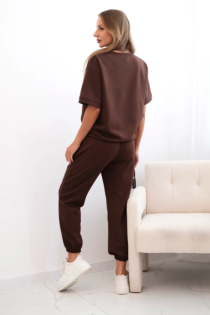 Dámský viskózový komplet s krátkým rukávem a nohavicemi hnědý