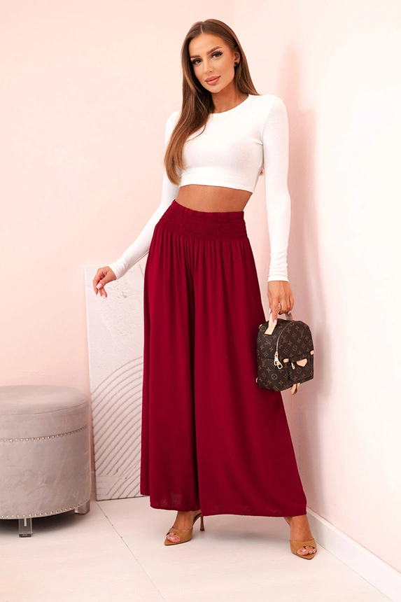 Dámské viskózové kalhoty s elastickým pasem Burgundsko