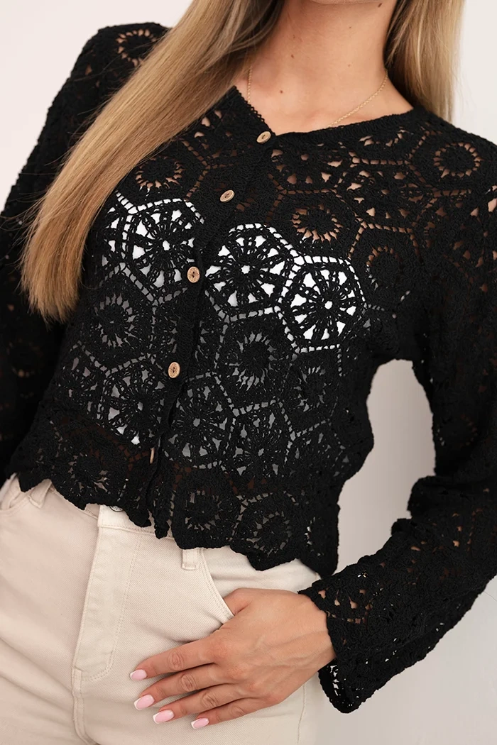 - Střih: lehký, krajkový svetr s dlouhým rukávem