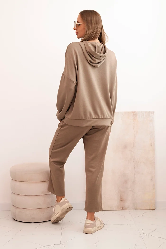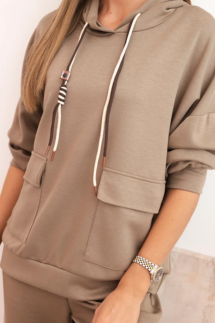 Komplet dámský máslový mikina s kapucí a kalhoty s páskem fango