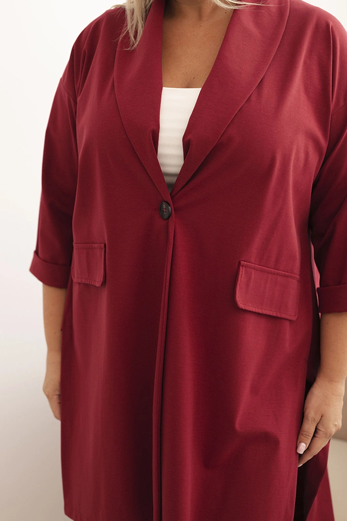 Dámský cardigan Plus Size Punto s bavlnou na knoflík bordový