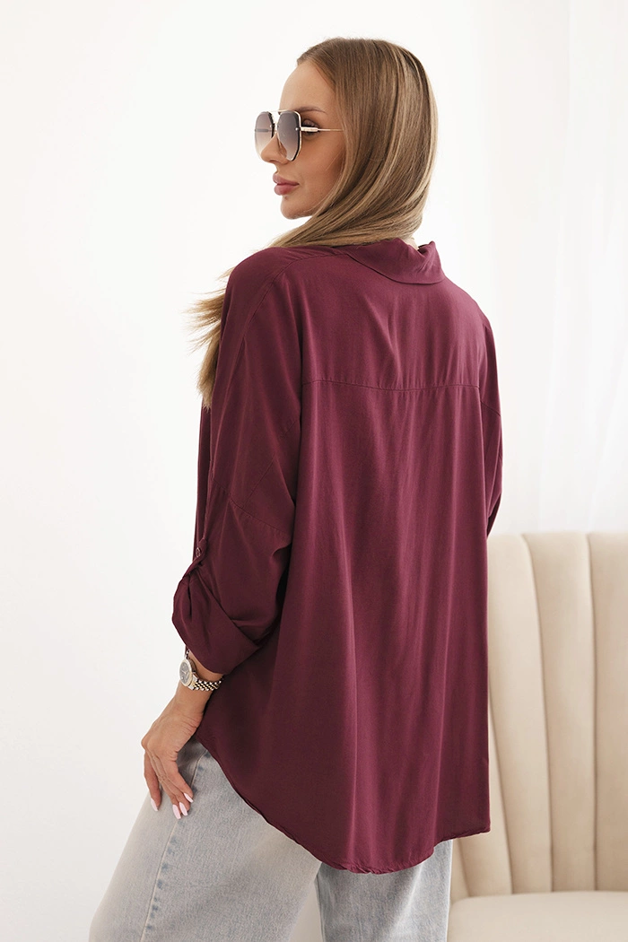 Dámská košile s viskózou, ozdobnými knoflíky a límečkem švestková