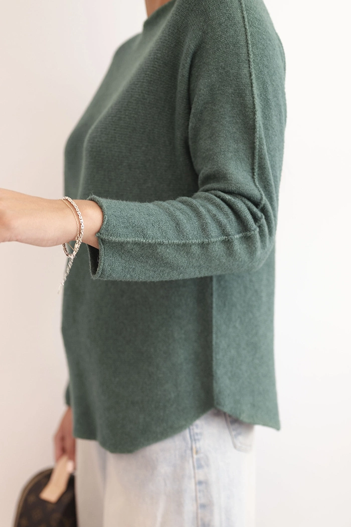 Dámský svetr z viskózy s dlouhým rukávem a kulatým výstřihem tmavě zelený