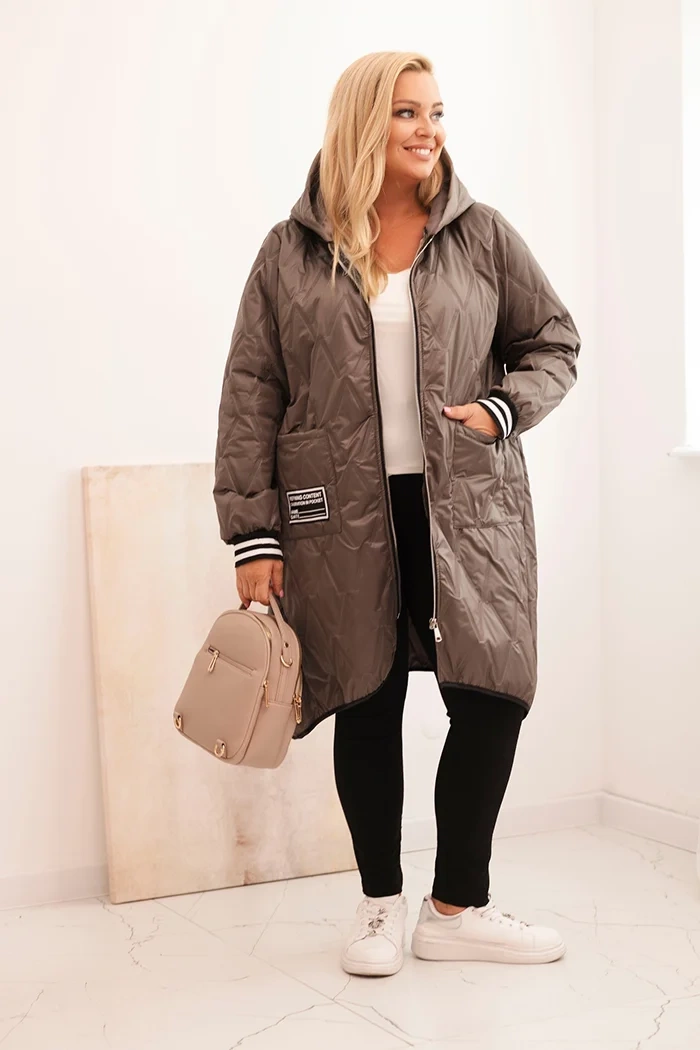 Dámská bunda Plus Size prošívaná s kapucí a sportovními manžetami fango