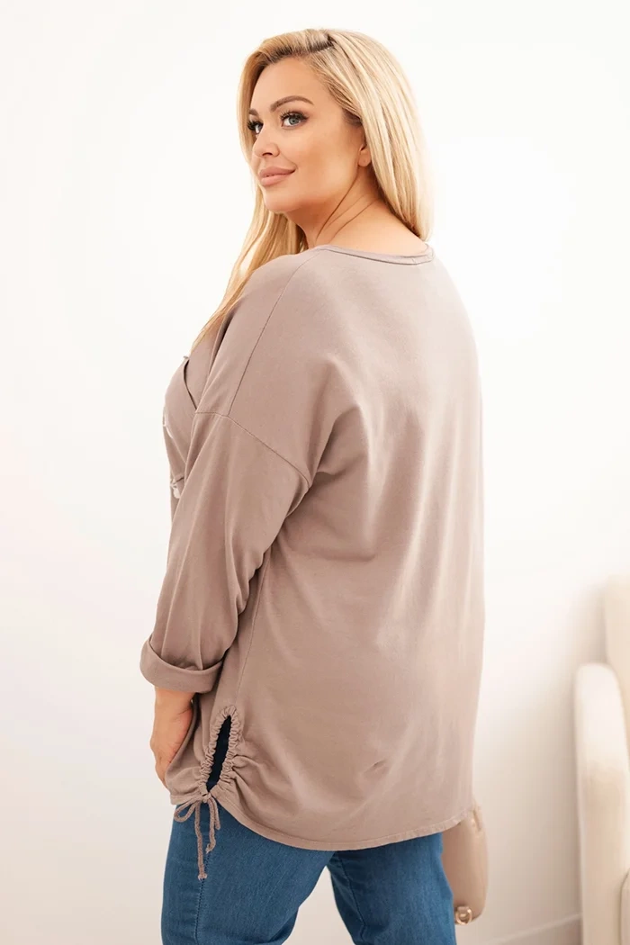 Díky šňůrkám všitým po stranách můžete regulovat délku blůzy a přizpůsobit ji svým potřebám. Oversize střih způsobuje, že model krásně padne na postavu, zakrývá případné nedokonalosti. Skvělá na nošení jak s kalhotami, tak s legínami – ideální na každý den, do práce nebo na setkání s přáteli.