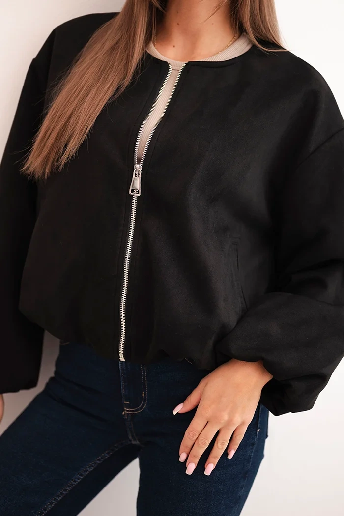 Stylová dámská bunda volného střihu je skvělou volbou na přechodné dny, kdy vám záleží na pohodlí a módním vzhledu. Vyrobena z měkkého materiálu s příměsí elastanu, dokonale se přizpůsobuje postavě, což zajišťuje svobodu pohybu a pohodlí při nošení. Bunda se zapíná na zip, má elegantní kulatý výstřih a mírně nabírané rukávy, skvěle se hodí jak do každodenních, tak i do více casualových stylizací.