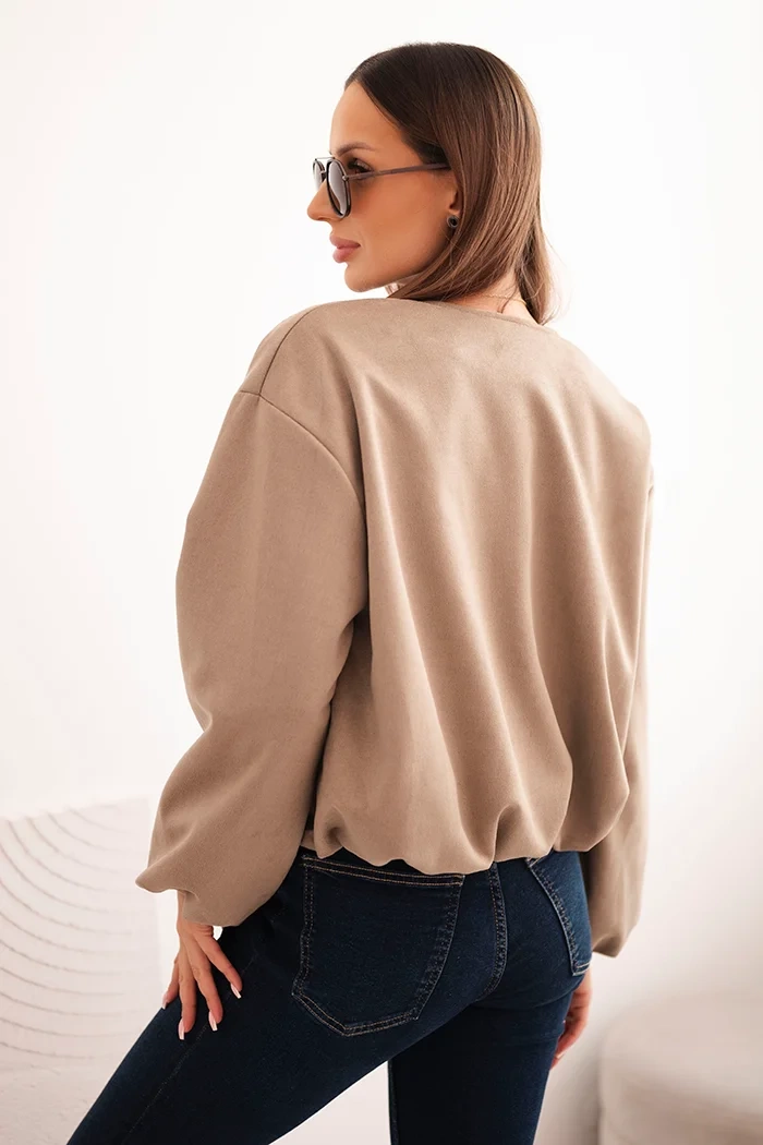 Stylová dámská bunda volného střihu je skvělou volbou na přechodné dny, kdy vám záleží na pohodlí a módním vzhledu. Vyrobena z měkkého materiálu s příměsí elastanu, dokonale se přizpůsobuje postavě, což zajišťuje svobodu pohybu a pohodlí při nošení. Bunda se zapíná na zip, má elegantní kulatý výstřih a mírně nabírané rukávy, skvěle se hodí jak do každodenních, tak i do více casualových stylizací.
