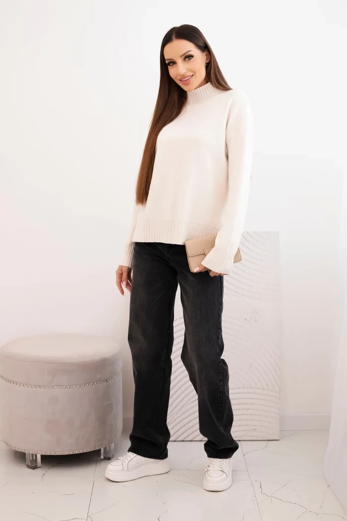 Svetr dámský s polo-výstřihem viskózový volného střihu béžový