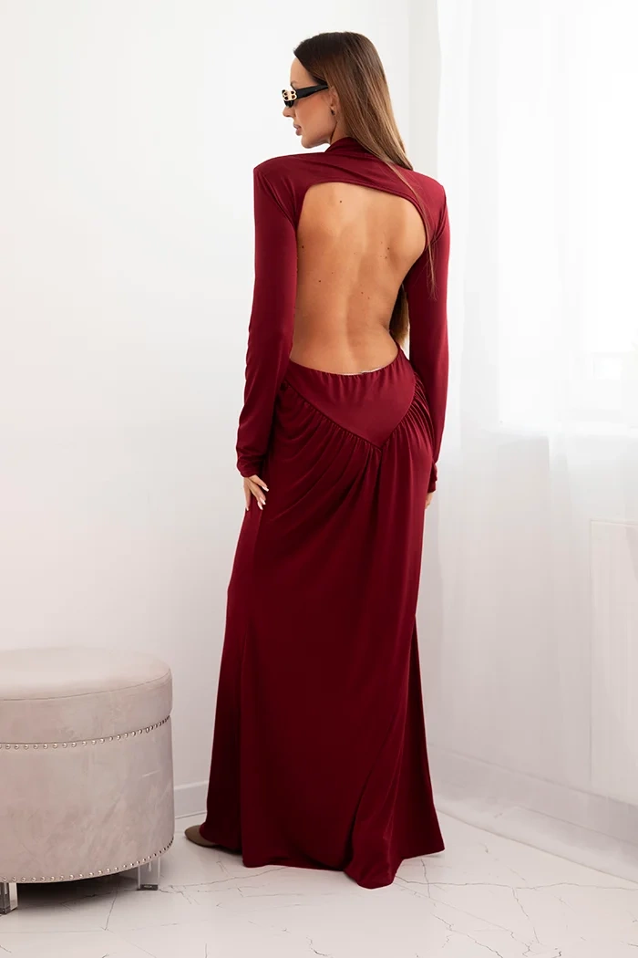 Dámská dlouhá šaty s viskózou a rolákem a odhalenými zády bordová