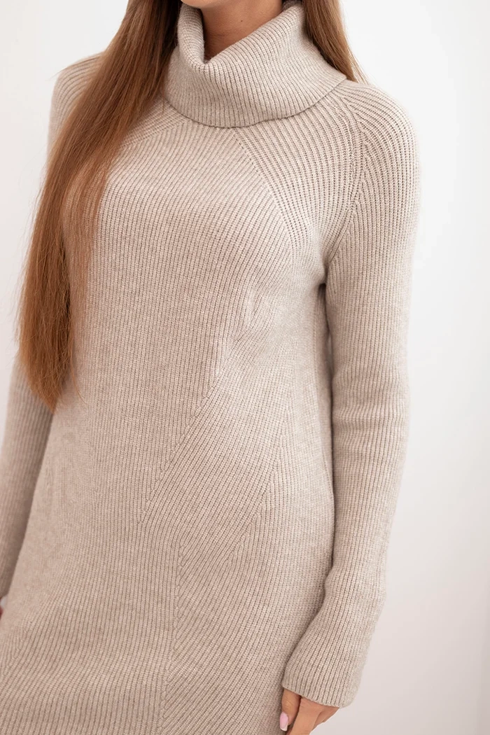 Dámské pletené šaty se širokým límcem jsou skvělým návrhem na chladnější dny pro ženy, které si cení pohodlí a ženského stylu. Vyrobené z měkké pleteniny s vysokým obsahem viskózy příjemně obepínají tělo, zajišťují komfort a volnost nošení. Široký límec dodává styl a skvěle funguje jako praktický prvek chránící před chladem.