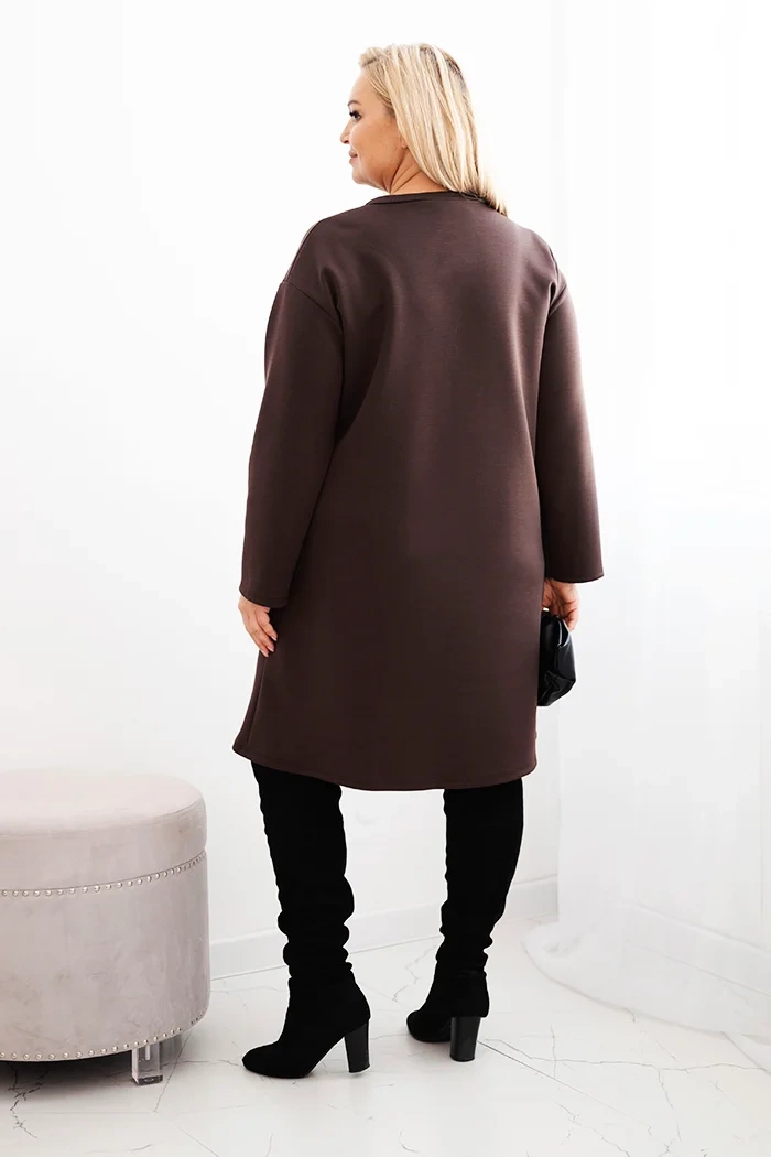 Dámská sukýnka Plus Size s ozdobným vsadkou s flitry hnědá
