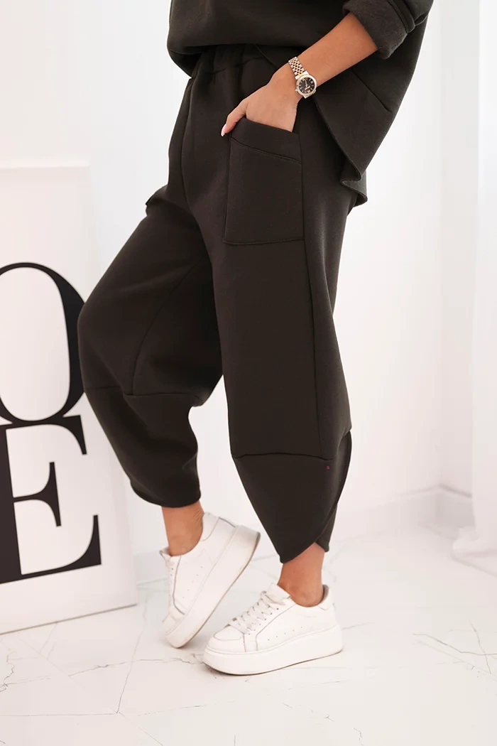Dámský komplet teplákový z silnějšího materiálu se širokými nohavicemi khaki