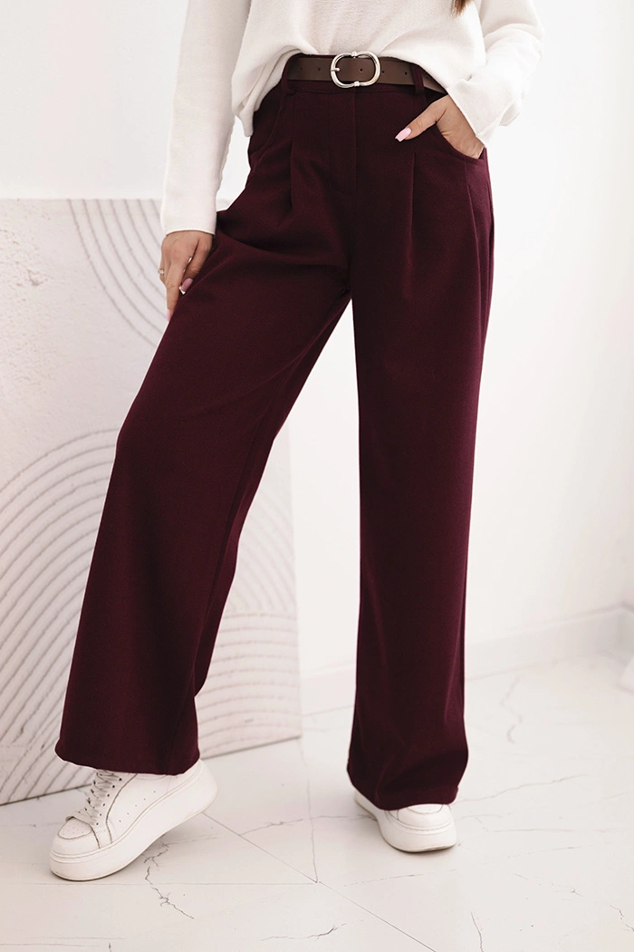 Dámské kalhoty s širokou nohavicí a páskem bordové