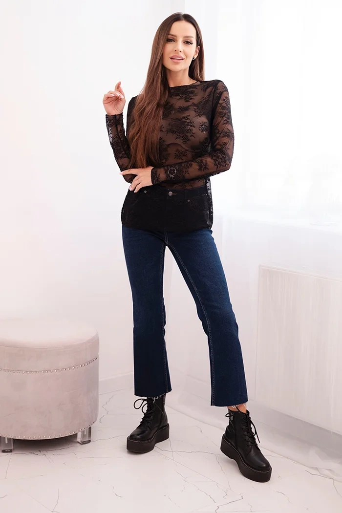 Průhledná dámská blůza vyrobená z jemné krajky je ideální volbou pro ženy, které si cení subtilní elegance a lehkosti stylizace. Italská výroba zaručuje vysokou kvalitu zpracování a péči o každý detail. Blůza se krásně hodí jak k každodenním, tak i k elegantnějším kombinacím – skvěle se osvědčí na rande, večírek, večeři nebo večerní vycházku.