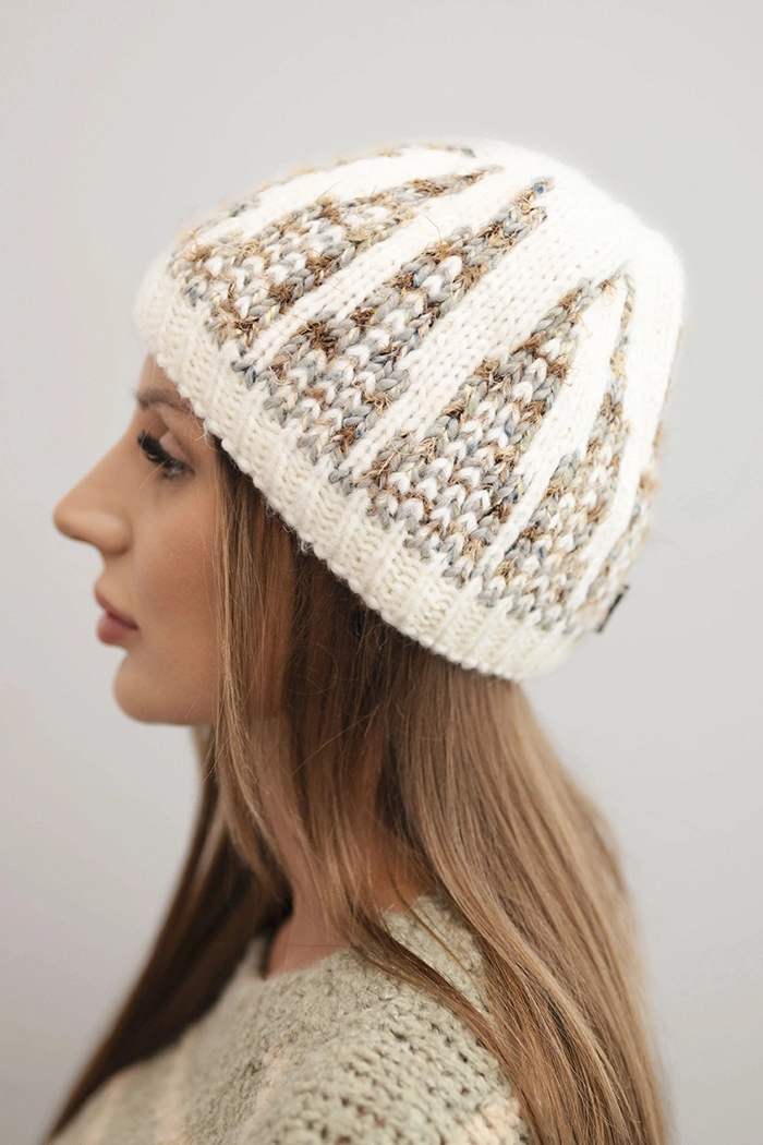 Stylová dámská čepice vyrobená z měkké a elastické příze, zdobená efektním, barevným pletením. Dokonalá na zimní dny – nejenže poskytuje teplo, ale také skvěle doplňuje každodenní stylizace. Ideální pro ženy, které si cení komfortu a módního vzhledu.