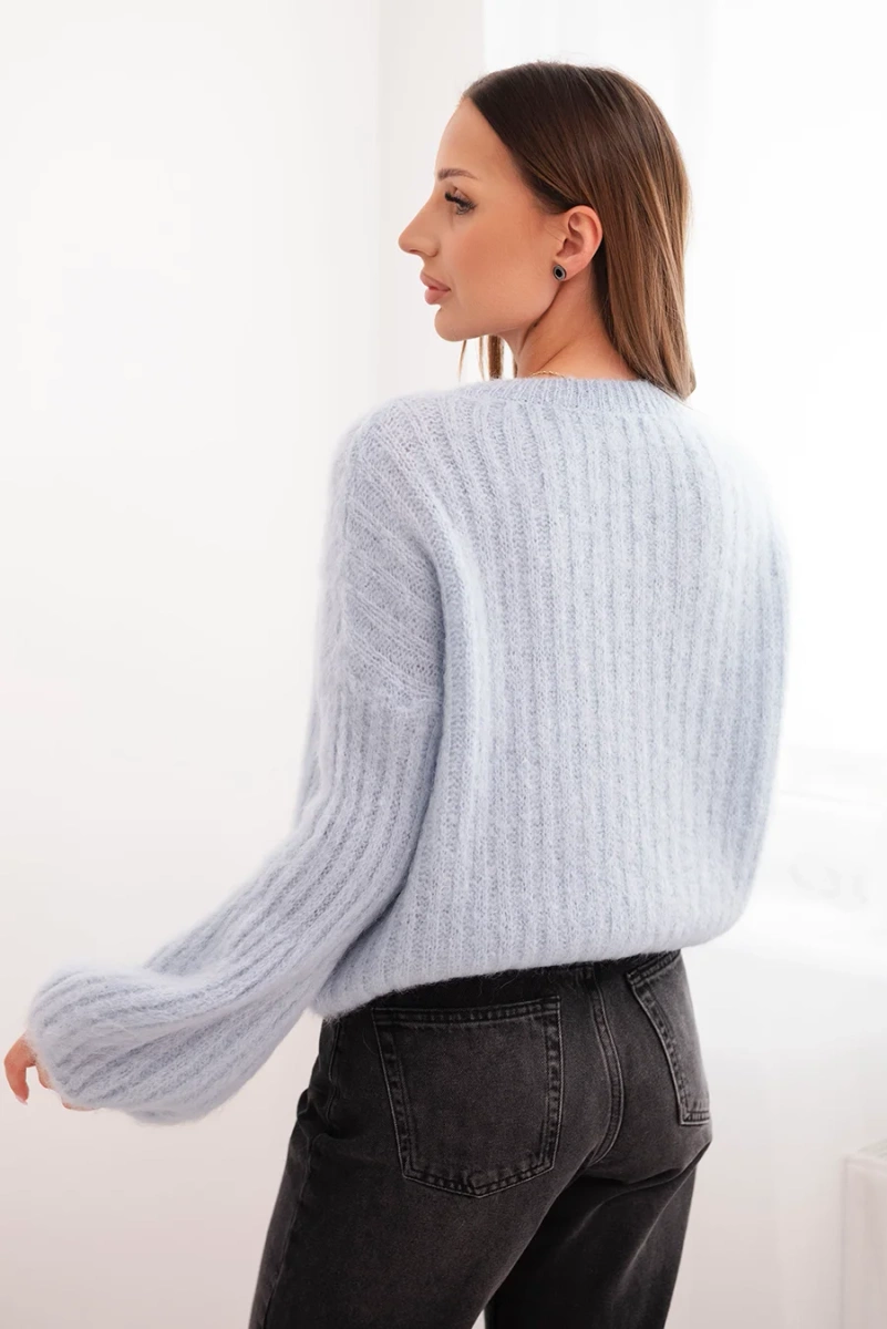 Stylový dámský svetr vyrobený z měkké směsi mohéru je ideální volbou na chladnější dny. Díky nadýchané textuře a volnému střihu se skvěle hodí jak do každodenních stylizací, tak do elegantnějších kombinací. Bufantové rukávy mu dodávají ženský půvab a módní charakter. Tento italský svetr není jen pohodlný, ale také vyjadřuje dobrý styl.