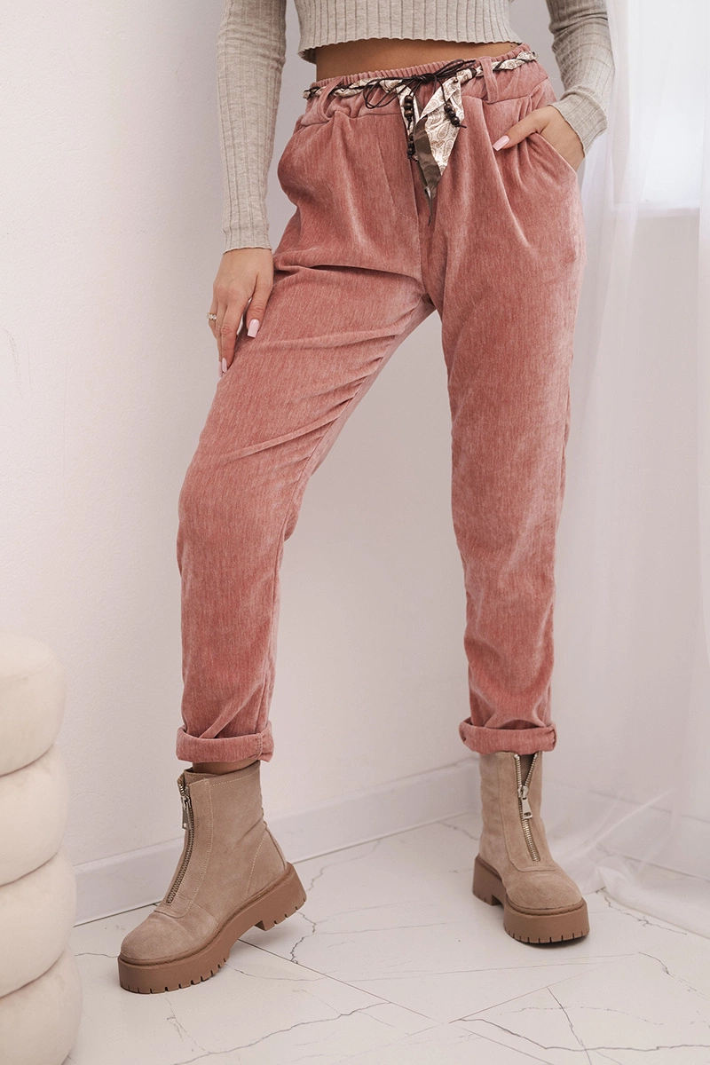 Dámské kalhoty z viskózy s šátkovým pásem tmavě růžové