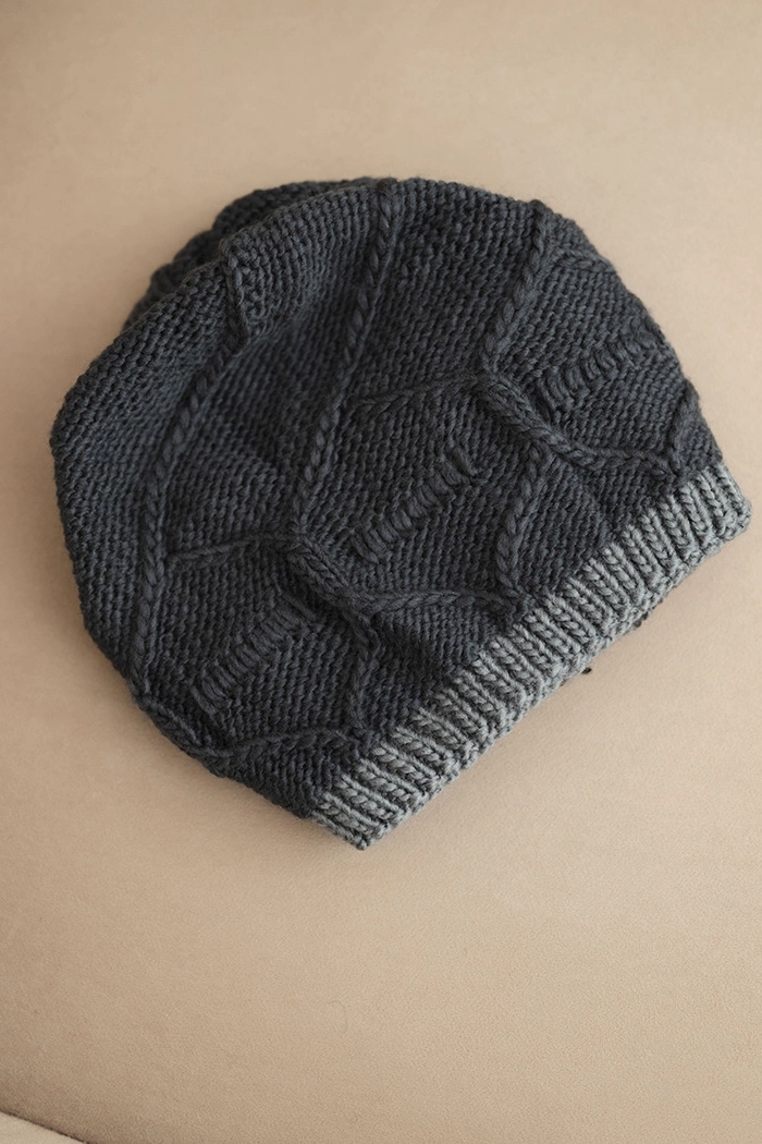 Dámská zimní čepice z vlny s proplétaným vzorem K443 grafitová