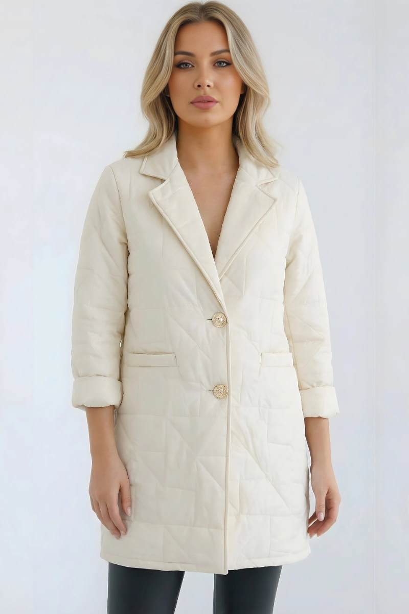 Dámská bunda Plus Size prošívaná s ozdobnými knoflíky a límcem jasno béžová