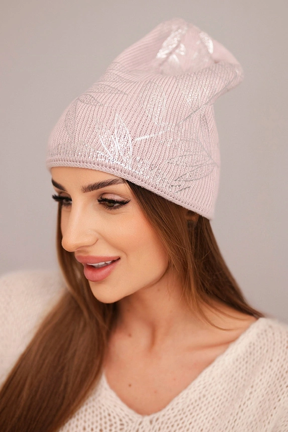 Stylová dámská čepice s jemným leskem, vyrobená z vysoce kvalitní pleteniny s přídavkem mohairu a vlny. Zlatý, rostlinný vzor přitahuje pozornost a dodává eleganci, díky čemuž je čepice ideální jak na každodenní nošení, tak jako módní akcent k zimním stylizacím.