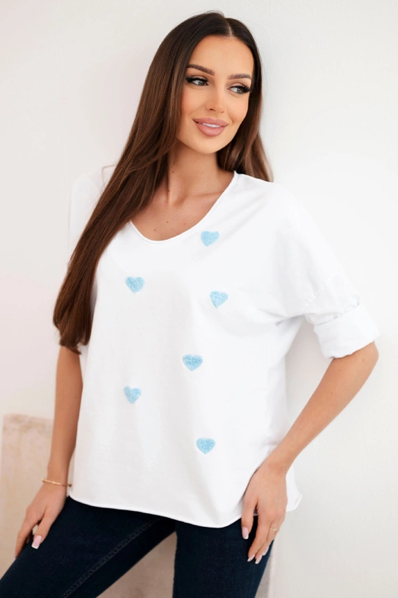 Dámská bavlněná blůza s dlouhým rukávem a srdíčky bílá+modrá