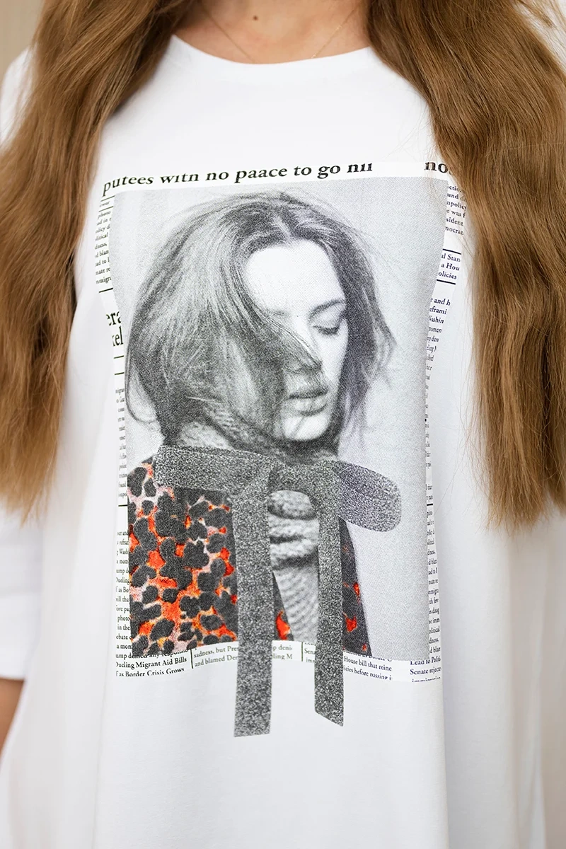 Dress with print and flared bottom white