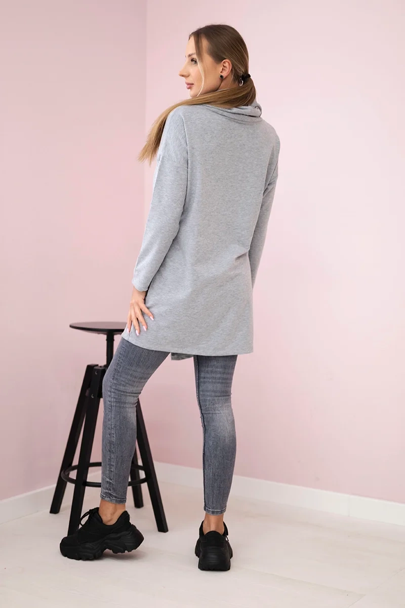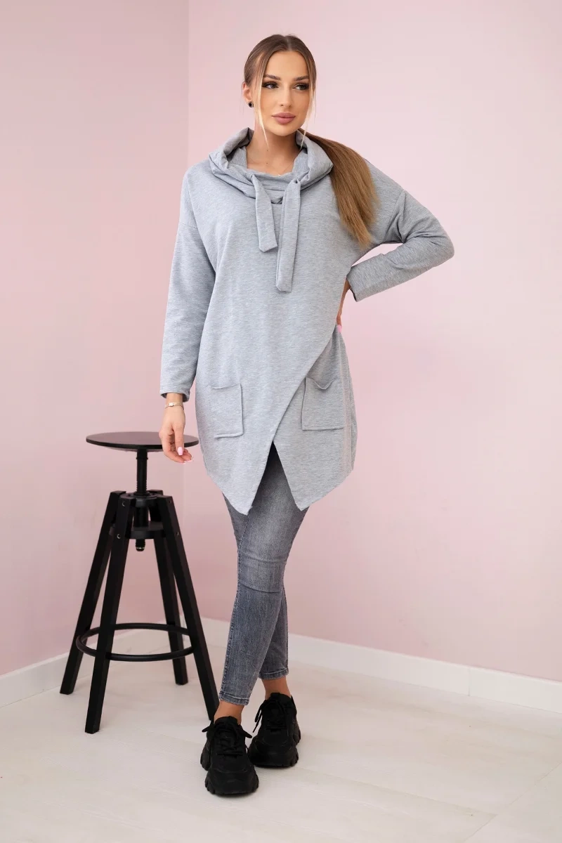 We present you with a fashionable tunic. The tunic has an envelope front. In addition, the tunic has pockets and a wide collar. This tunic is characterized by fashionable appearance and precision of workmanship. Certainly it cannot be missing from your wardrobe. The tunic is made of high quality material. The universal size will be suitable for ladies who wear everyday clothes in size  L, XL, 2XL.