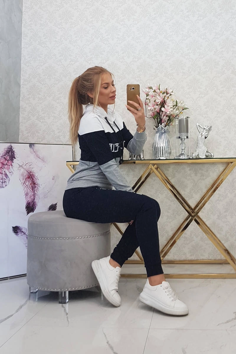 We present you a set of sweatshirts and pants. The sweatshirt has Yourself sign. Trousers with pockets. Pants also with print. The set is made of high quality material. The size is universal and will be suitable for women wearing sizes S, M or XL