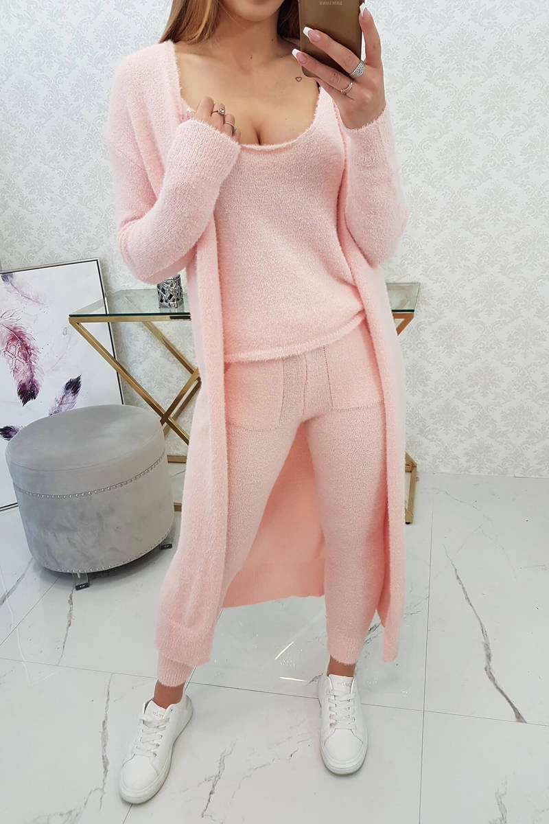 We present you a fashionable 3-piece set. The set consists of a cape, blouse and pants. The set is made of high quality material. The size is universal and will be suitable for ladies in sizes S, M, L.