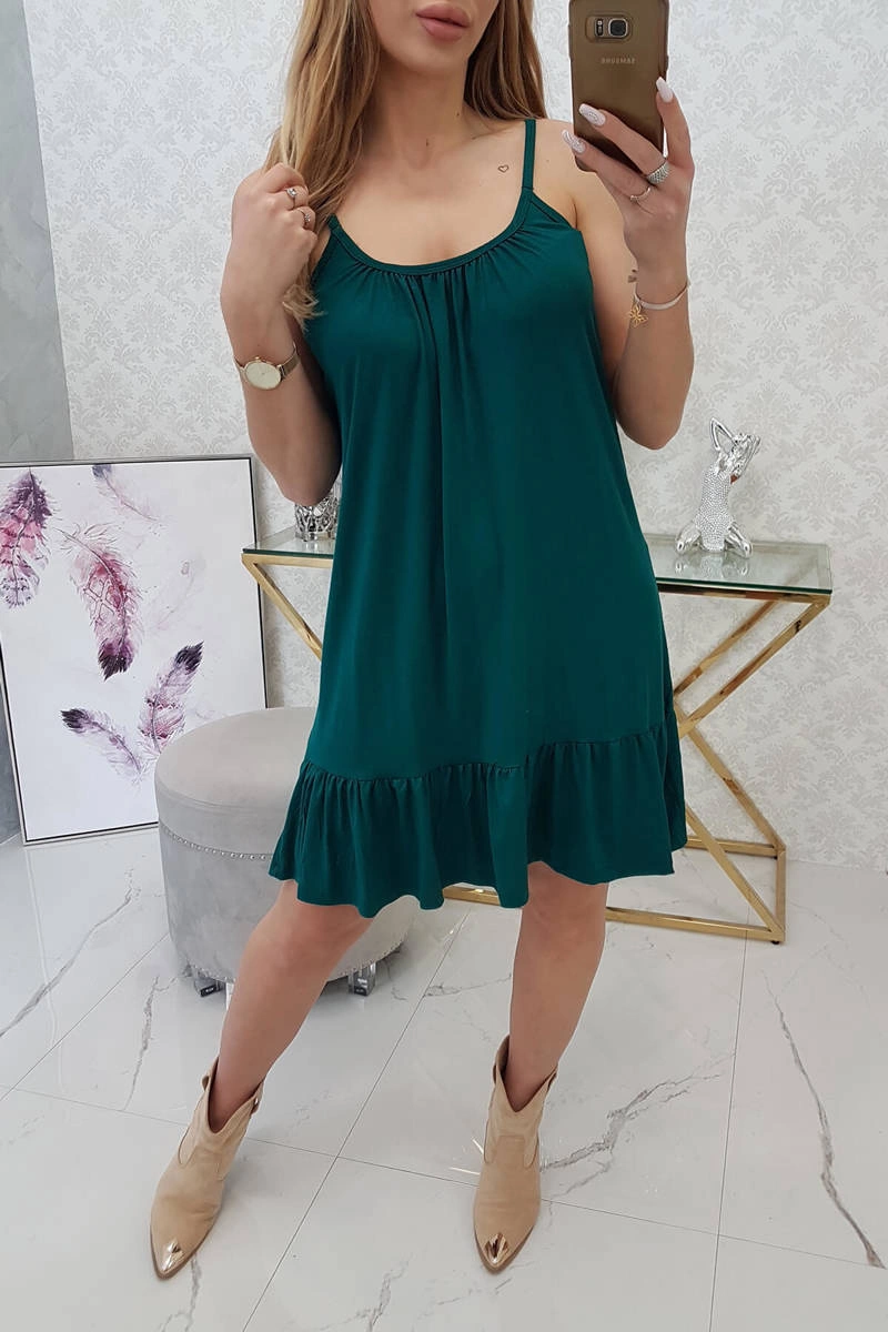 We present you a fashionable dress. Dress with thin straps, which can be shortened by tying. The dress at the bottom has a frill. The dress is made of high quality material. The size is universal and will be suitable for ladies wearing sizes S, M or L.