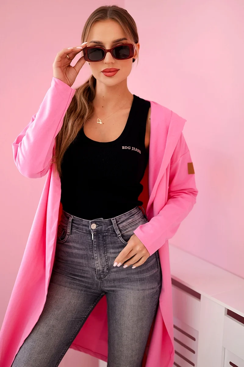 Long cardigan with hood light pink