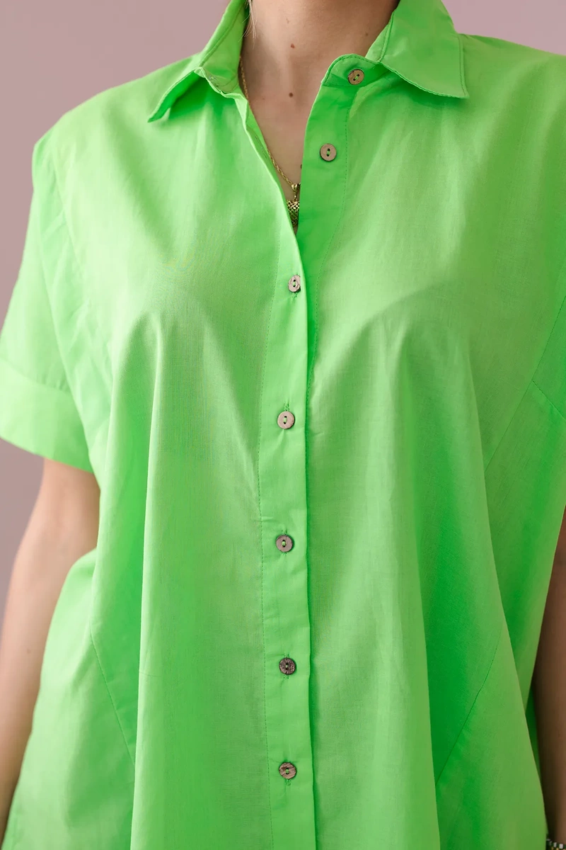 A cotton shirt with short sleeves is a perfect choice for warm days, combining elegance with comfort. Made of high-quality cotton, the shirt provides not only a pleasant feeling on the skin, but also good ventilation and freedom of movement. The short sleeve adds lightness to the shirt and gives it a casual character, which makes it perfect for both work and informal meetings or going out. The universal cut makes a cotton shirt with short sleeves an irreplaceable element in the wardrobe of every woman who values style and comfort. The size is universal and will be suitable for women wearing size S, M or L.
