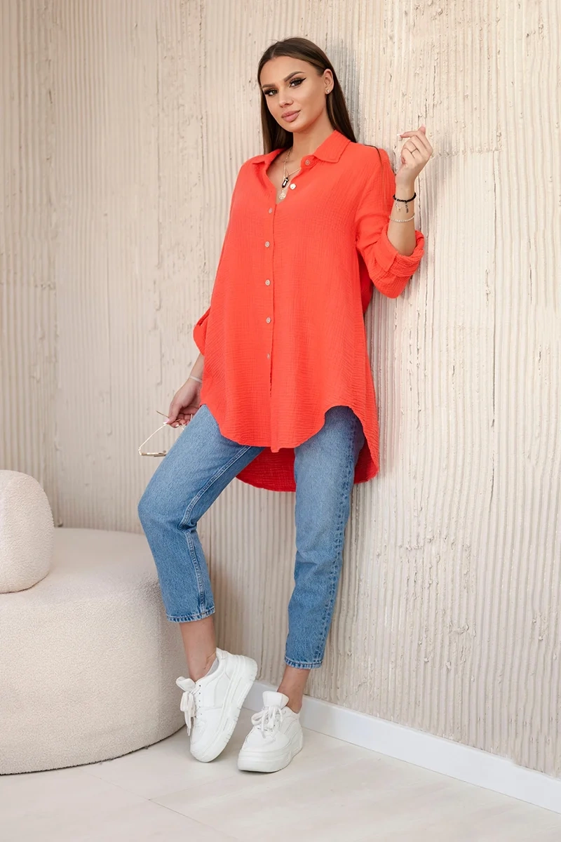 The oversized cotton muslin shirt is the perfect choice for women who value comfort and style. Made of airy, breathable muslin, it provides maximum comfort, especially on warmer days. Its oversized cut makes it incredibly versatile - you can wear it loosely, tied with a belt or as a light wrap. The shirt goes perfectly with both jeans and elegant trousers or a skirt, so it will work in many styles - from everyday to more sophisticated. The delicate structure of the muslin gives it subtle elegance, and natural cotton allows the skin to breathe. It is a must-have in every wardrobe - classic, comfortable and timeless. Perfect for any season. The size is universal and will be suitable for women wearing size S, M or L.