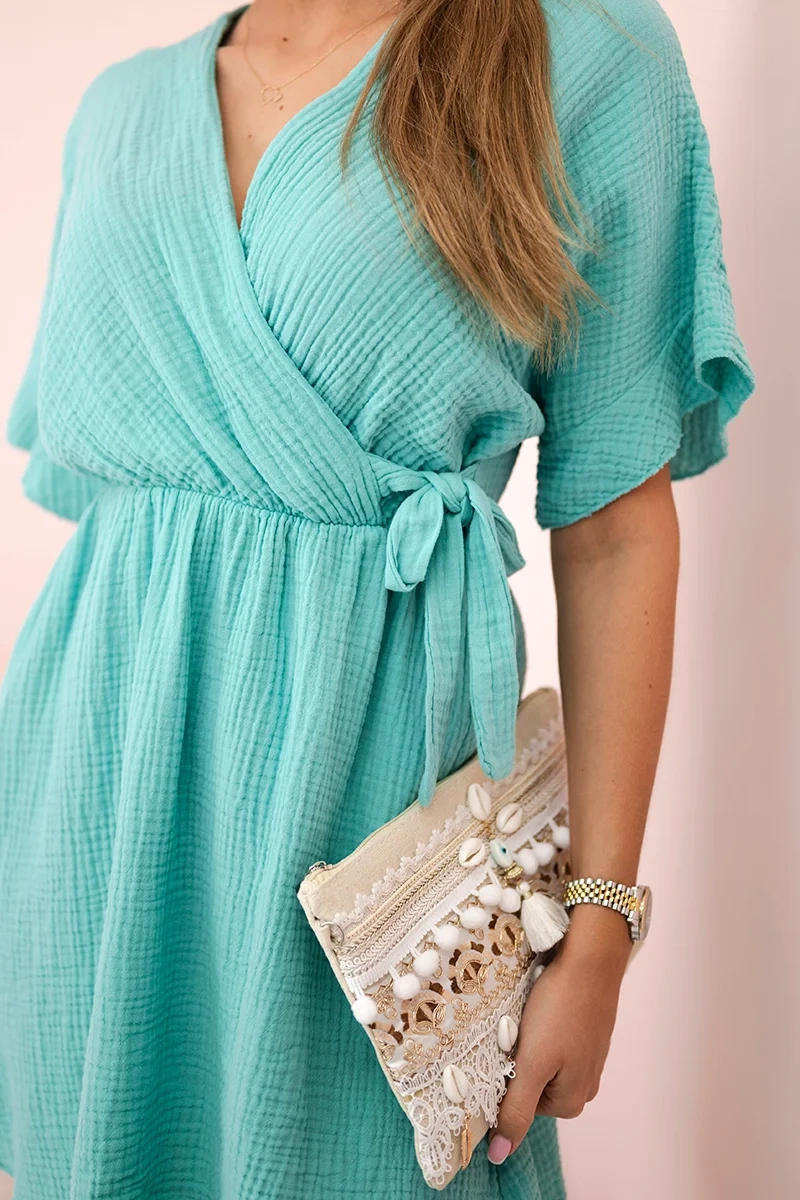 A fitted muslin dress is the perfect choice for those who want to combine lightness and a feminine look in one. Made of delicate muslin material, this dress is extremely comfortable and airy, perfect for warm days. Its fitted cut emphasizes the figure, giving it elegance and feminine charm. Perfect for many occasions, from summer walks to meetings with friends or romantic dates. Thanks to its versatility and comfort, the fitted muslin dress will become a favorite element of your wardrobe. The size is universal and will be suitable for women wearing size S, M or L.