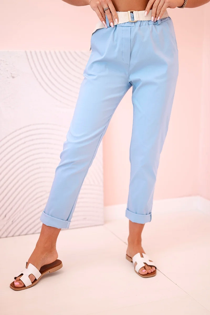Trendy and comfortable women's pants with a belt are the perfect choice for women who value style and comfort. Made of high-quality material, they provide freedom of movement and an excellent fit to the silhouette. They feature an elastic waistband and a practical belt that accentuates the waist. Their classic cut with rolled-up legs makes them suitable for both casual and more elegant outfits. They pair perfectly with a shirt or a light sweater. The size is universal and fits women wearing S, M, or L.