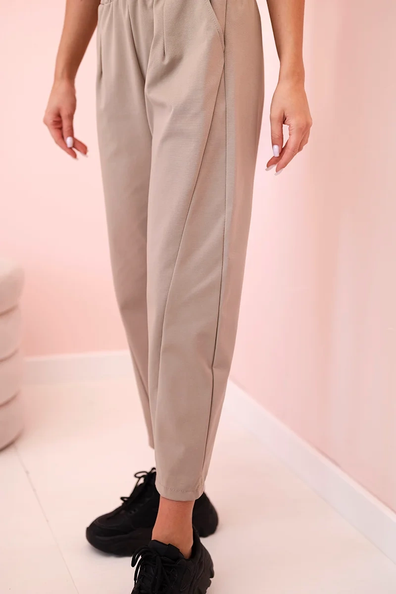 Summer Punto trousers are a great choice for women who value comfort and a fashionable look. Made of light and breathable material, they are ideal for warm days. Their loose cut provides freedom of movement, and the elastic waistband with adjustable lacing guarantees a perfect fit to the figure. The trousers have practical pockets that add functionality and casual character. The universal design makes them perfect for both everyday styling and summer trips. Summer Punto is a combination of comfort and elegance - you can match them with your favorite blouse, T-shirt or top, creating a light and stylish styling for any occasion. Choose Summer Punto trousers and feel fashionable all season long! The size is universal and will be suitable for women wearing sizes S, M or L.